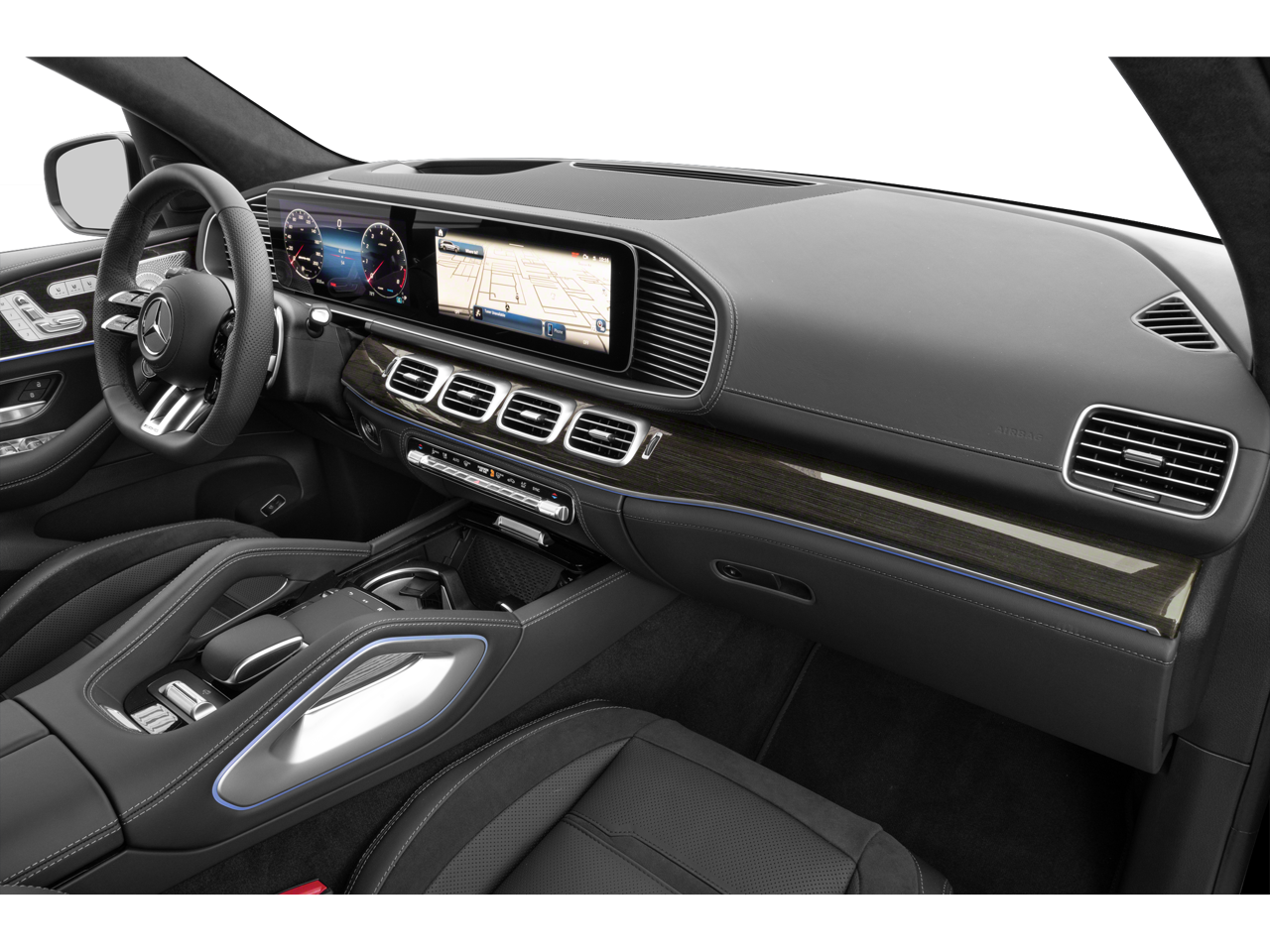 MANUFAKTUR INTERIOR PACKAGE MANUFAKTUR high-pile floormats w/embroidered AMG® logo, MANUFAKTUR Headrest Cushions in Microfiber, embroidered AMG® logo, MANUFAKTUR Illuminated Door Sills, MANUFAKTUR Lettering on Wood Trim, Burmester® HIGH-END 3D SURROUND SOUND SYSTEM TIREFIT, EXECUTIVE REAR SEAT PACKAGE PLUS Third-Row Seat Control, Heated & Ventilated Rear Seats, Rear Seat Wireless Charging, MBUX Rear Tablet, Comfort Rear Headrests, Multicontour Rear Seats w/Massage, AMG® NIGHT PACKAGE matte black roof rails, A-wing trim, rear apron trim, tailpipes, front splitter, window frames and railing in high-gloss black and heat-insulating dark-tinted glass, REAR SIDE AIRBAGS, Leather Seats, Navigation, Sunroof