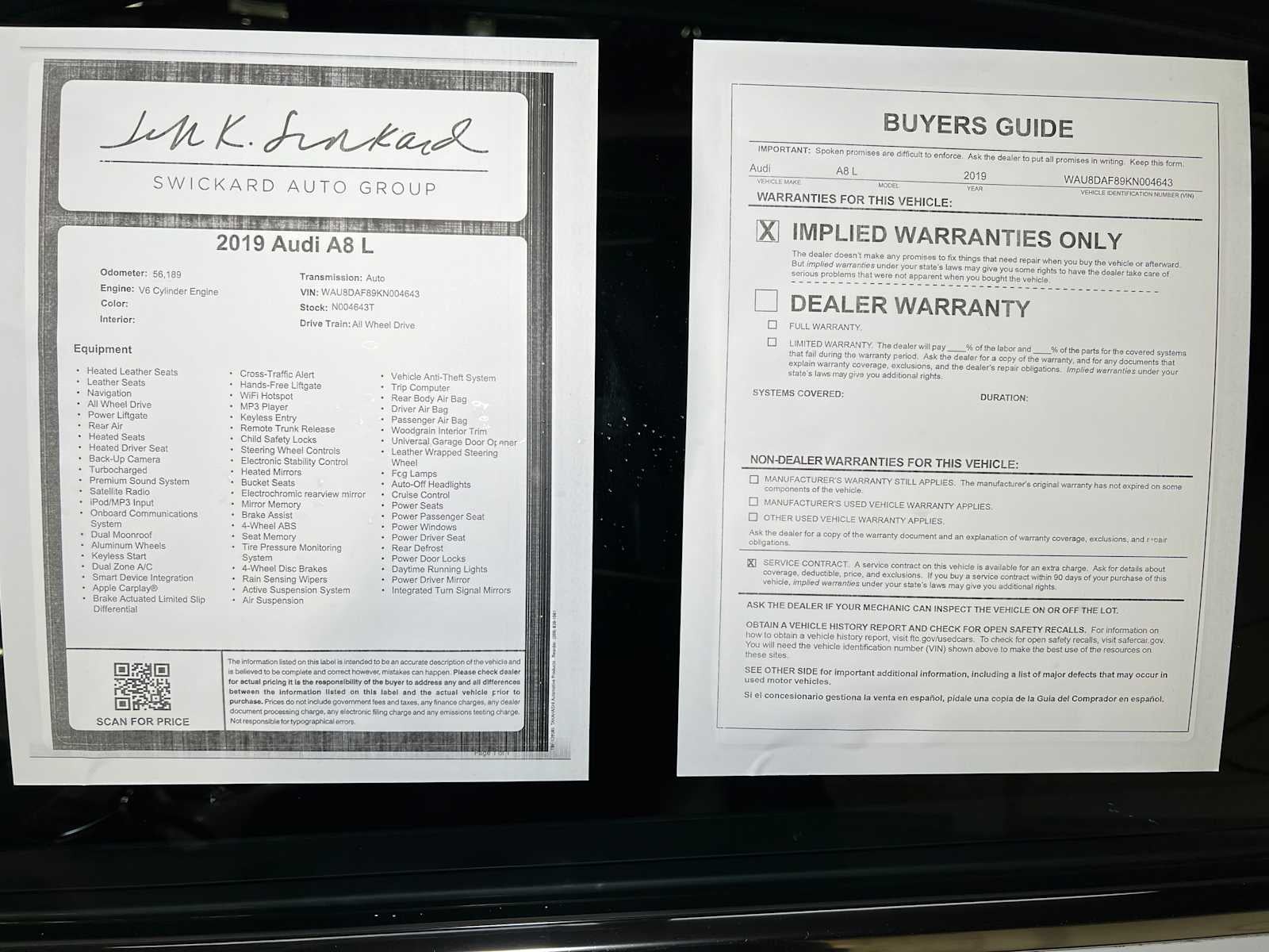 - Vehicle Name: Audi A8 L