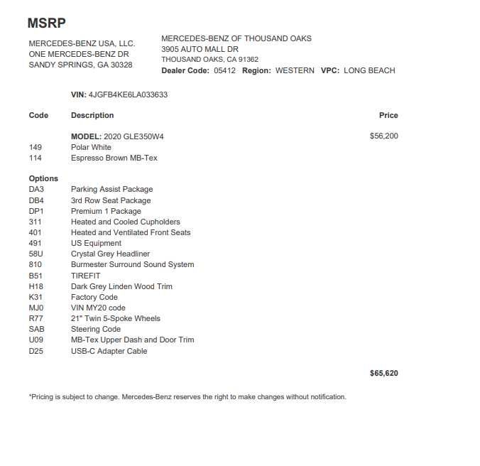 3RD ROW SEAT PACKAGE 3rd Row Seat, Power 2nd Row Seat, Additional 2 USB Type-C Ports in 3rd Row, WHEELS: 21 TWIN 5-SPOKE Tires: 275/45R21 Fr & 315/40R21 Rr AS, PREMIUM PACKAGE Wireless Charging, Burmester® Surround Sound System, Interior Ambient Lighting w/Illuminated Door Sills, SiriusXM radio, Pre-Wiring for Rear Seat Entertainment & Comfort, 115V Power Outlet, VENTILATED FRONT SEATS, PARKING ASSIST PACKAGE Parking Package, Surround View System, Navigation, Sunroof, Full-Time 4MATIC® All-Wheel, Power Liftgate, Turbocharged Mercedes-Benz of Thousand Oaks is your local Mercedes-Benz dealership, serving the Thousand Oaks and Los Angeles Metro area since 1982. Our showroom always includes the most current luxurious and sophisticated Mercedes-Benz models. Were only a short trip from many communities, including Malibu and Simi Valley, and our team is happy to provide sales, financing, and automotive service and repair on site.
