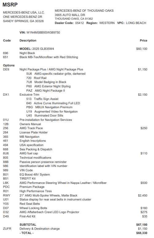 - Vehicle Name: Mercedes-Benz GLB